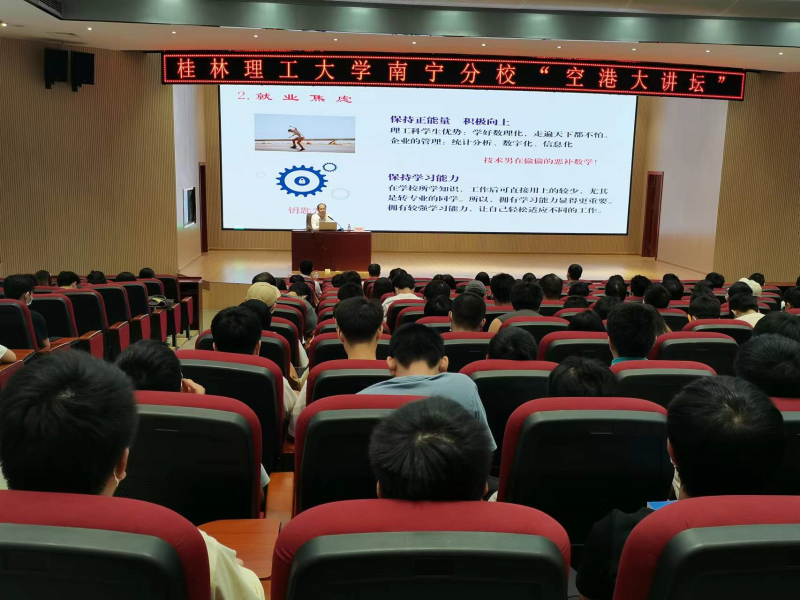 覃海棠教授级高级工程师结合自身的成长经历、工作履历以及公司人才需求等工作实际,以详实的现实案例,就如何消除就业焦虑、如何进行职业选择和有效做好职业生涯规划等方面进行了释疑解惑,为即将面临求职择业的同学们作了一场别开生面的专题报告。覃海棠教授级高级工程师还勉励同学们弘扬“桂工”精神,以“活到老学到老”的态度,努力学好本领,同时还要学会调整心态、释放压力,始终以昂扬向上的精气神对待学习、工作和生活。
