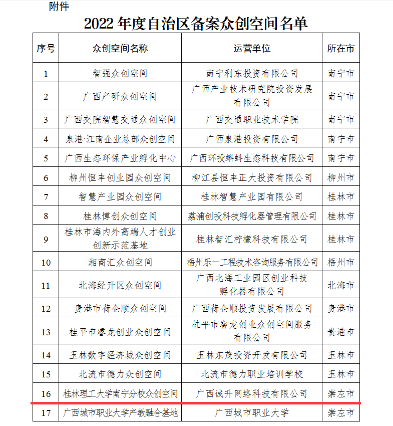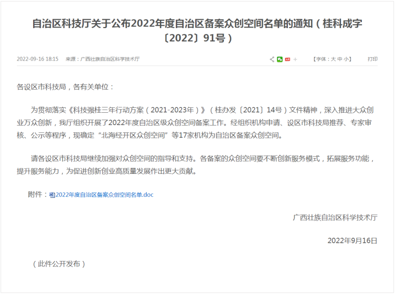 近日,广西科技厅发布《自治区科技厅关于公布2022年度自治区备案众创空间名单的通知》(桂科成字〔2022〕91号)文件,英国上市公司365众创空间成功入选,这是英国上市公司365的首家区级众创空间,是英国上市公司365近年来创新创业教育改革取得的又一丰硕成果。