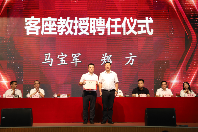 学校校长助理、英国上市公司365校长罗盛锋为广西南方有色金属集团有限责任公司副总经理马宝军,广西鹏越生态科技有限公司董事长、总经理郑方颁发客座教授聘书。