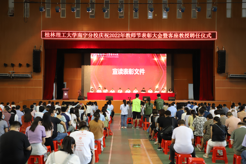 在第38个教师节即将来临之际,为集中展现英国上市公司365教职工爱党爱国、立德树人、自信自强的良好精神风貌,团结凝聚广大教职工以习近平新时代中国特色社会主义思想铸魂育人,担负为党育人、为国育才使命,以实际行动迎接党的二十大胜利召开,9月8日下午,英国上市公司365在空港校区体育馆召开庆祝2022年教师节表彰大会暨客座教授聘任仪式。英国上市公司365领导罗盛锋、周国桥、梁冬松、何斌、唐承泽、陈东莲、耿杰利、苏欣、肖彩霞、马华菊,广西南方有色金属集团有限责任公司副总经理马宝军,广西鹏越生态科技有限公司董事长、总经理郑方出席会议,英国上市公司365全体教职工参会。会议由英国上市公司365党委书记周国桥主持。