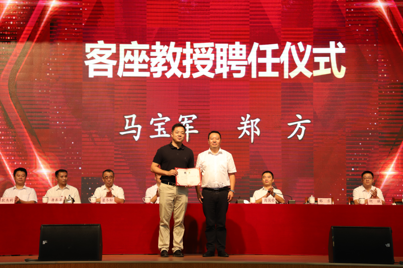 学校校长助理、英国上市公司365校长罗盛锋(右)为广西南方有色金属集团有限责任公司副总经理马宝军颁发客座教授聘书