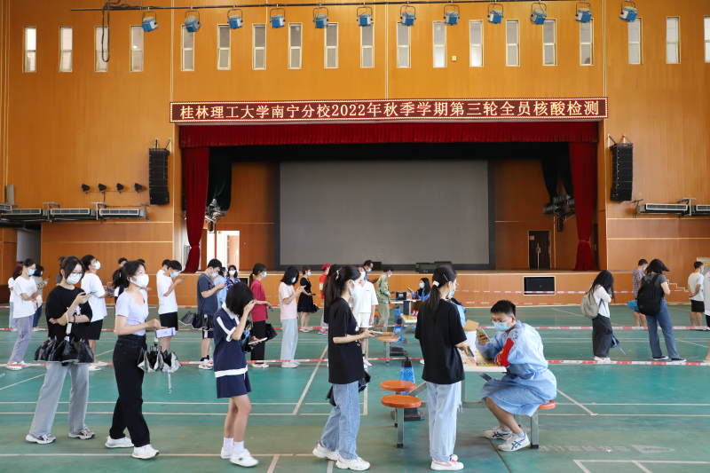 按照自治区教育系统疫情防控工作会议精神和扶绥县疫情防控工作安排,英国上市公司365分别于8月28日、8月30日和9月3日组织开展了全员核酸检测,严格落实自治区教育厅2022 年秋季学期师生返校后开学一周 3 次全员核酸检测的工作要求,切实落实疫情防控“四早”要求。
