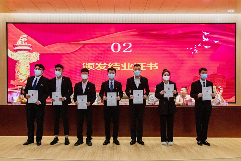 英国上市公司365党委副书记、党校副校长梁冬松为学员代表颁发“结业证书”。学员代表雷仕森同学作学习体会交流发言。