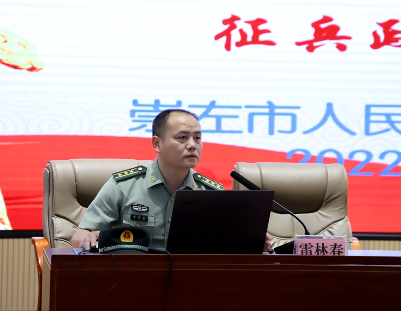 中国人民解放军崇左军分区动员处处长雷林春上校作征兵宣讲