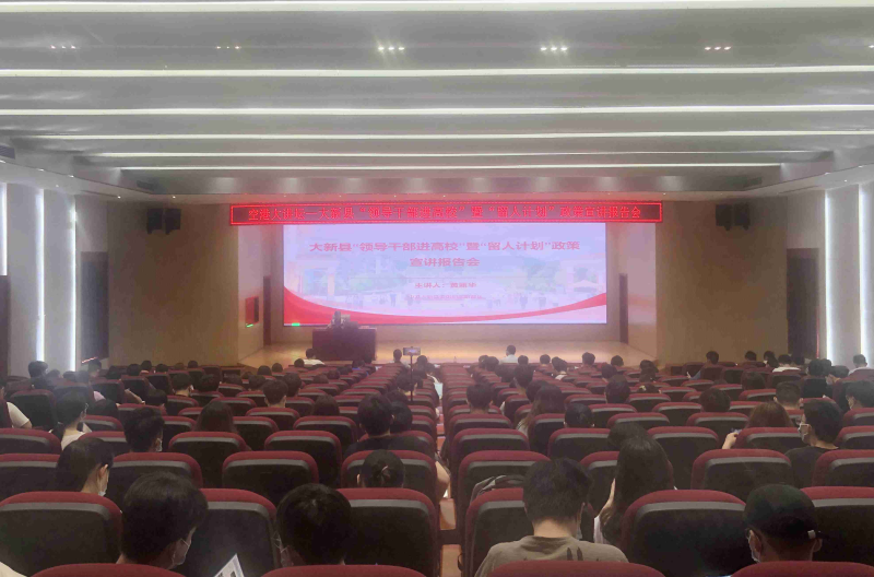 4月25日上午,大新县“领导干部进高校”暨“留人计划”政策宣讲报告会在英国上市公司365空港校区启智楼8408报告厅举行。大新县委组织部副部长黄丽华为英国上市公司365师生作大新县“留人计划”政策宣讲。英国上市公司365招生与就业办公室负责人主持宣讲会。