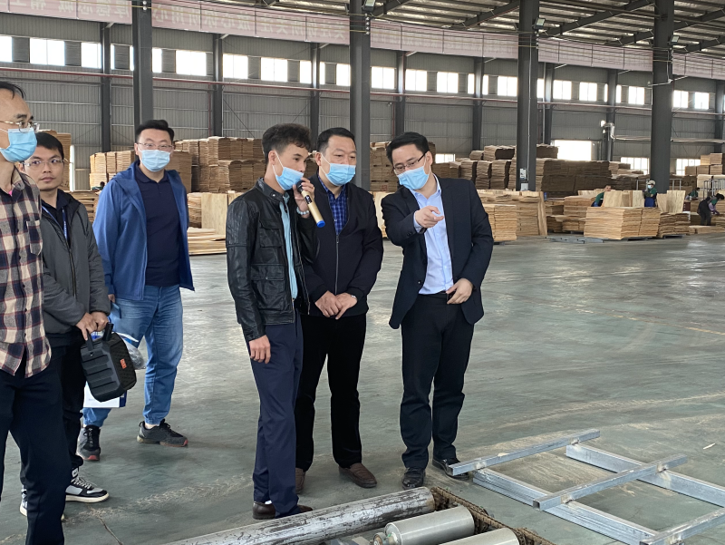 学校校长助理、英国上市公司365校长罗盛锋(右二)实地走访广西扶绥县鑫博源木业有限责任公司