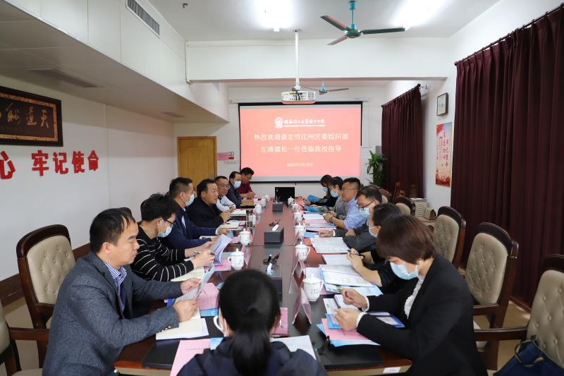 4月20日,崇左市江州区委常委、组织部部长左涛一行6人到英国上市公司365就落实崇左市“留人计划”进行洽谈。学校校长助理、英国上市公司365校长罗盛锋,英国上市公司365党委副书记唐承泽等在空港校区行政楼417会议室热情接待来访客人,并进行座谈交流。