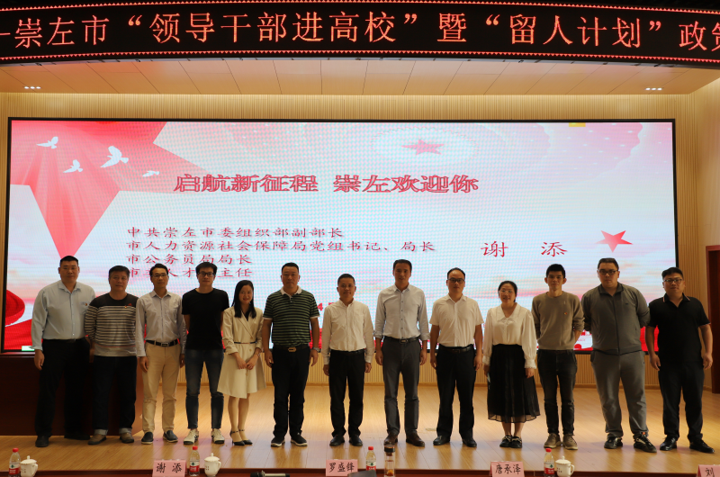 谢添局长分析了体制外与体制内工作的共同点和区别,强调选择体制内的工作一定要有基层情怀和为民服务的情怀,并从人才补贴、住房保障、发展平台、人才服务等方面详细解读了崇左市“留人计划”优厚政策。他谈到,崇左市为毕业生提供了广阔的就业创业空间和良好的生活及发展环境,希望各位毕业生留在崇左市开启人生新的里程,打拼出无愧于青春、无愧于时代的骄人业绩,在祖国南疆这片土地上建功立业,实现人生的出彩。