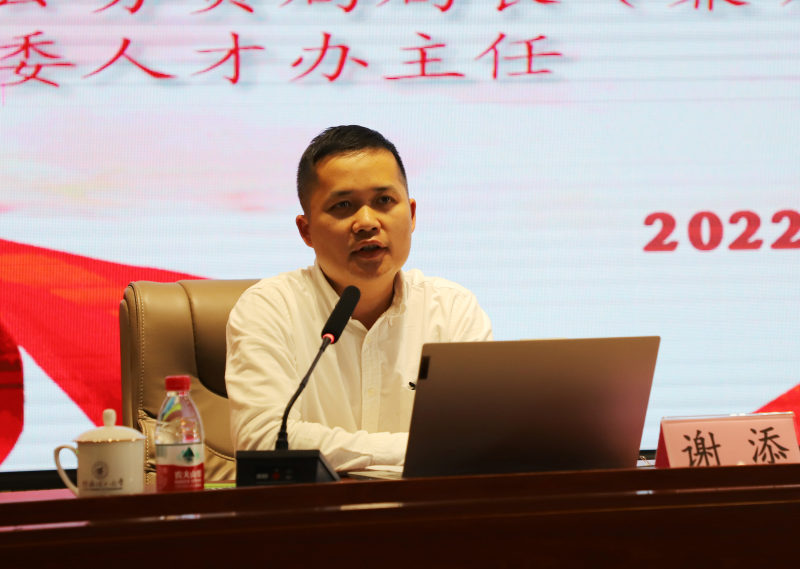 崇左市委组织部副部长、市人社局局长谢添作报告