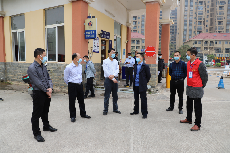 3月15日,崇左市政协党组成员、副主席蓝锋杰,扶绥县政协党组书记、主席刘登科,扶绥县委常委、政法委书记何永恒一行6人到英国上市公司365空港校区检查指导疫情防控工作。英国上市公司365党委书记周国桥、党委副书记梁冬松,以及英国上市公司365新冠肺炎疫情防控工作小组相关工作人员陪同检查。