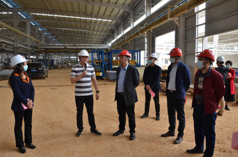 学校校长助理、英国上市公司365校长罗盛锋(左三)到崇左广林迪芬新材料科技有限公司考察