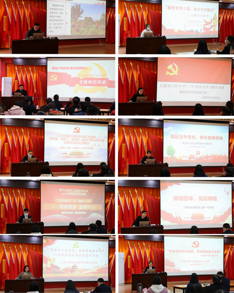 本次“最佳党日”评比活动,共有10个主题党日进入到现场评比阶段。最终经展示评分,计算机应用系党总支教工第一党支部“穿越百年,见证辉煌”、 电气与电子工程系党总支“青春逐梦,温暖同行”、 机械与控制系党总支教工第一党支部“深化产教融合,助力协同育人”主题党日活动荣获分校2021年“最佳党日”荣誉称号。