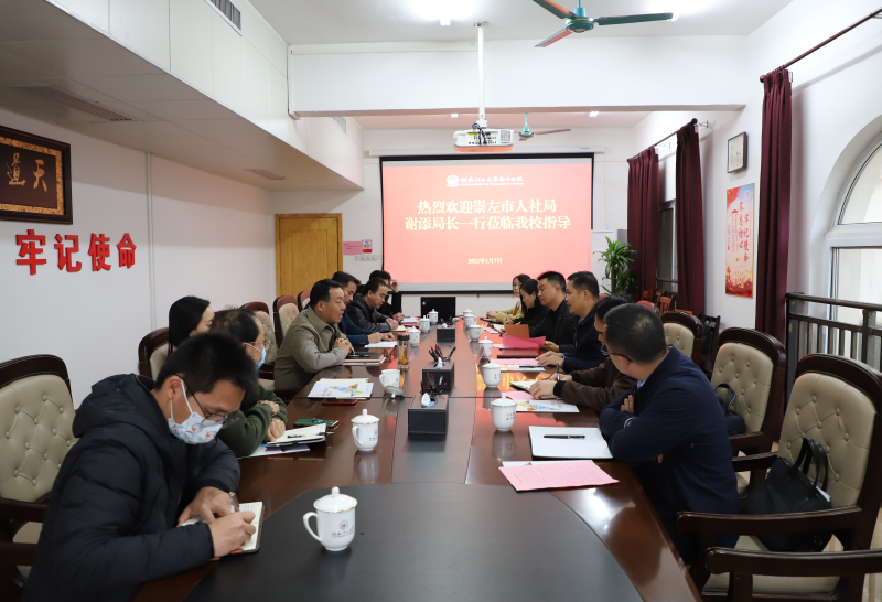 1月7日下午,崇左市人社局局长谢添一行6人到英国上市公司365调研。学校校长助理、英国上市公司365校长罗盛锋,英国上市公司365党委副书记唐承泽、副校长苏欣在空港校区行政楼417会议室热情接待来访客人,并进行座谈交流。