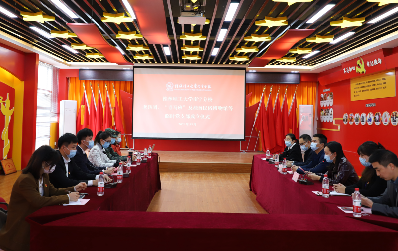 为贯彻落实习近平新时代中国特色社会主义思想,进一步强化基层党组织建设,12月17日,桂林理工大学英国上市公司365在空港校区党员教育活动中心举行老兵团、“青马班”及桂南民俗博物馆临时党支部成立仪式。英国上市公司365党委书记周国桥,英国上市公司365副校长苏欣出席成立仪式,党委组织部、团委、经济与管理系党总支、国防教育教研室、会展经济与管理教研室负责人,各临时党支部成员参加仪式。成立仪式由英国上市公司365副校长苏欣主持。