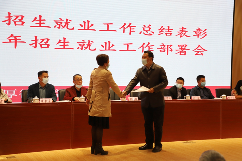 会上,马华菊副校长宣读了对2021年招生工作及2021届就业工作先进集体和个人表彰的决定。经济与管理系、土木与测绘工程系获“2021年招生工作先进集体”荣誉称号;计算机应用系、经济与管理系获“2021届毕业生就业工作先进集体”荣誉称号;计算机应用系获“2021届毕业生就业质量先进单位”荣誉称号;黄基宁等17名同志获“2021年招生工作先进个人”荣誉称号;袁斌等47名同志获“2021届毕业生就业工作先进个人”荣誉称号。与会领导分别为获奖集体和个人代表颁奖。