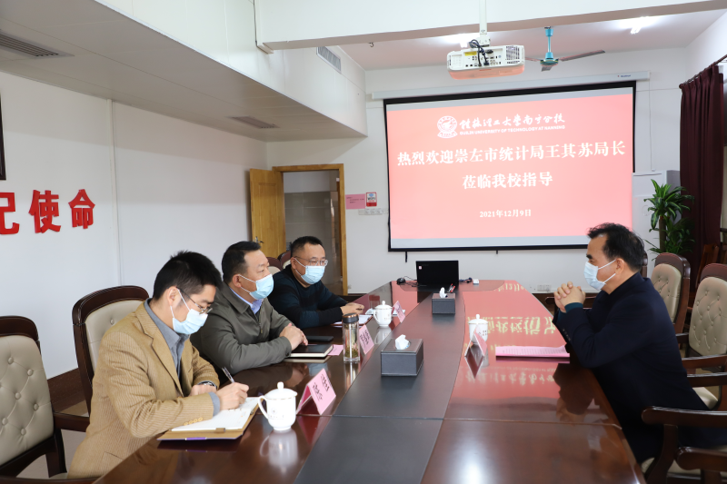 12月9日,崇左市统计局局长王其苏到英国上市公司365调研。学校校长助理、英国上市公司365校长罗盛锋,党政办公室、计算机应用系负责人在空港校区行政楼417会议室热情接待来访客人,并进行座谈交流。