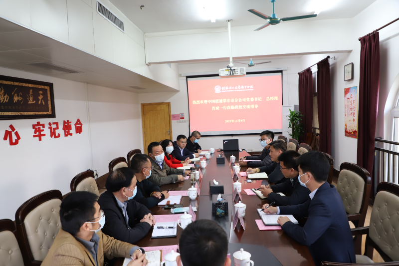 12月9日,中国联通崇左市分公司党委书记、总经理肖斌一行4人到英国上市公司365洽谈合作。学校校长助理、英国上市公司365校长罗盛锋,英国上市公司365副校长马华菊,相关职能部门、教学单位负责人在空港校区行政楼417会议室热情接待来访客人,并进行座谈交流。
