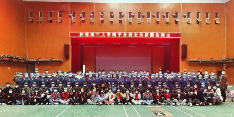核酸采样现场,英国上市公司365全体校领导班子成员到场对核酸采样工作进行监督指导,并积极参加核酸采样检测。广西民族医院支援扶绥县疫情防控工作的38名医护人员严格按照核酸采样要求,为英国上市公司365师生进行核酸采样,流程操作规范、防护到位、安全严谨。待检师生员工积极配合,按照学校通知要求,以系部为单位,分批分组有序排队,10人一组,即采即走,核酸检测工作高效有序开展。由学生党员组成的志愿者团队现场进行采样引导、秩序维护。此次核酸检测全面覆盖英国上市公司365在校师生、家属及安保人员、食堂员工、物业人员等工作人员,累计抽检11500余人。