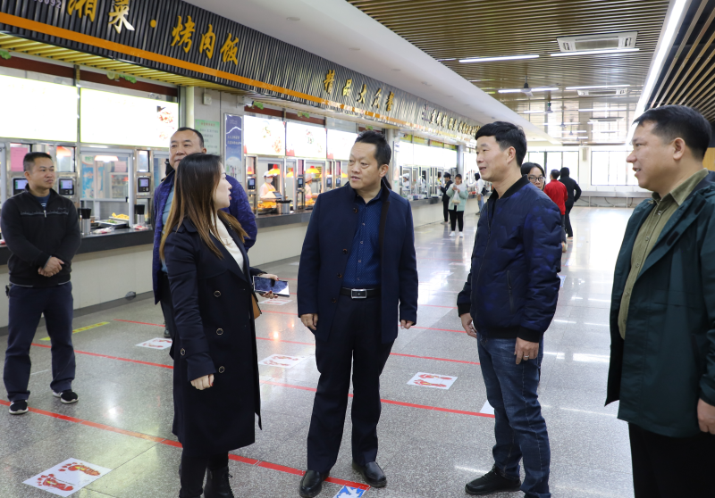曾繁荣一行对空港校区食堂进行了实地调研,对食堂用餐环境、菜品价格等进行了询问,深入食堂后厨,对食堂仓库、操作间、监控室等进行了详细检查,听取了后勤管理部食堂负责人关于食堂经营管理模式、食品安全保障机制等方面的汇报。他对空港校区食堂工作给予了充分肯定,并就食堂工作开展提出三点要求:一是要高度重视食品安全,将师生的生命安全和身体健康放在第一位,严把采购关口,确保原料质量;二是要坚持以师生需求为导向,丰富菜品特色,提升服务质量和水平;三是要严格执行疫情防控常态化要求,合理规划食堂就餐布局,规范设施摆放,将疫情防控落细落实,保证师生就餐安全。
