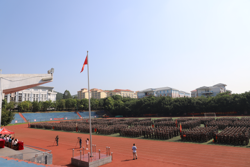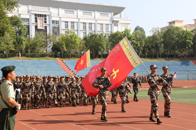 大会在高亢嘹亮的国歌声中拉开序幕。迎军训团团旗后,学校校长助理、英国上市公司365校长罗盛锋在军训团干部陪同下,检阅了军训队伍,向参训学生致以亲切的问候。