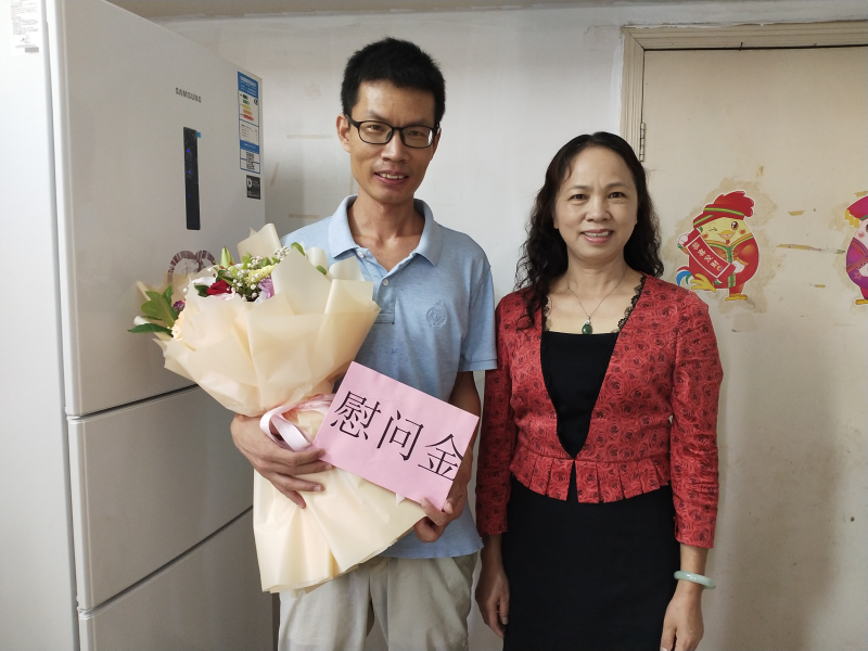 英国上市公司365副校长陈东莲(右)慰问困难教师涂志军