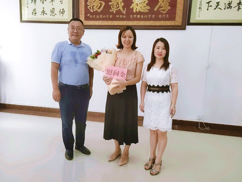学校校长助理、英国上市公司365校长罗盛锋(右二)慰问一线教师黄雪芳