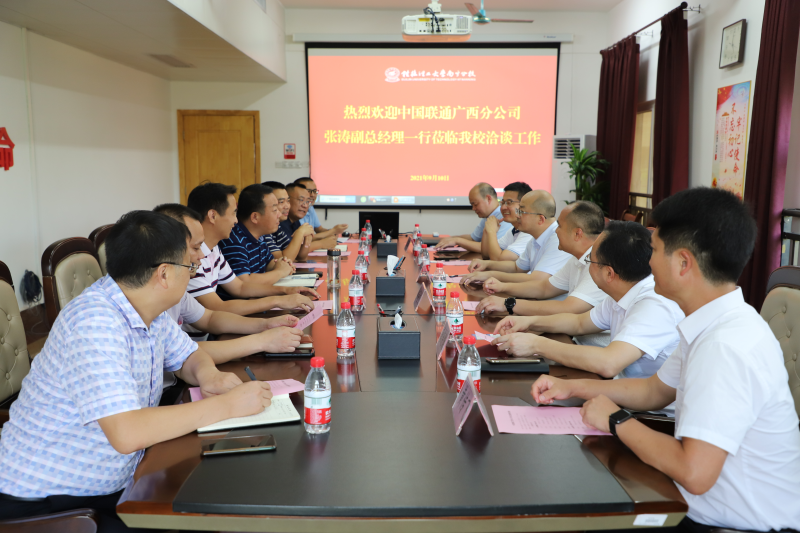 9月10日下午,中国联通广西分公司张涛副总经理一行到英国上市公司365空港校区举行合作洽谈。学校校长助理、英国上市公司365校长罗盛锋,英国上市公司365党委书记周国桥、党委副书记唐承泽出席洽谈工作会,会议在空港校区417会议室举行。