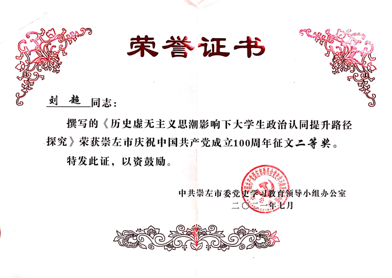 本次征文活动成绩的取得是英国上市公司365教师在党史学习教育中思想自觉、理论自觉和行动自觉的表现,是英国上市公司365教师学党史、悟思想的重要体现。