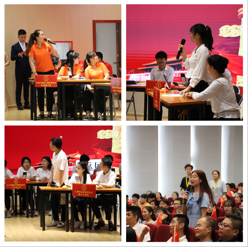 本次主题活动由党史知识竞赛和过“政治生日”两个环节组成。在党史知识竞赛中,各党总支、直属党支部共9个代表队27名师生党员参赛。比赛分为“初试锋芒”——必答题、“你追我赶”——抢答题、“勇攀高峰”——风险题三个环节,各参赛队你追我赶,比赛现场气氛活跃。经过激烈角逐,计算机应用系党总支、基础学科部直属党支部荣获一等奖;冶金与资源工程系党总支、电气与电子工程系党总支、体育教学部直属党支部荣获二等奖;机械与控制工程系党总支、经济与管理系党总支、土木与测绘工程系党总支、机关党总支荣获三等奖。陈丽娇、李富康、杜隆超三名选手荣获“最佳得分手”。