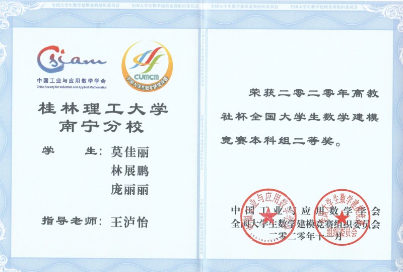 2020年全国大学生数学建模竞赛本科二等奖