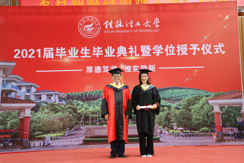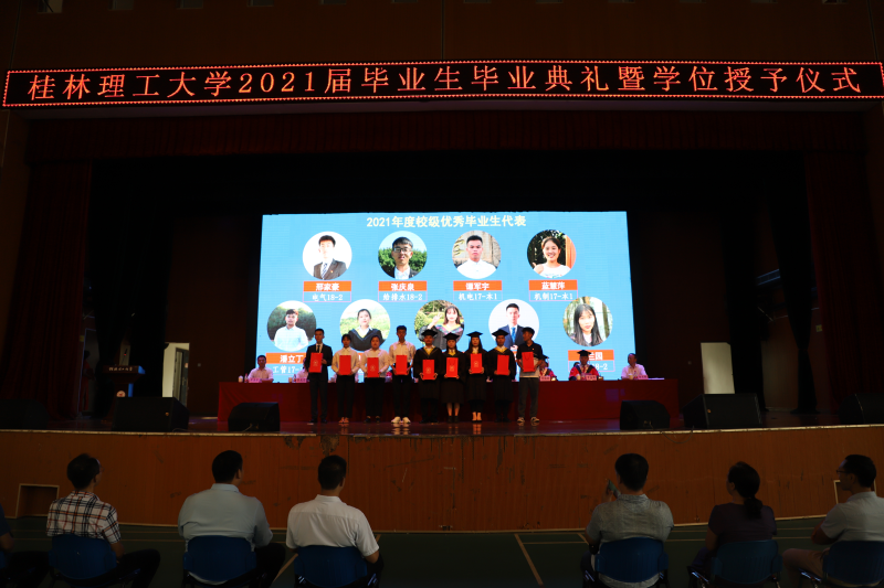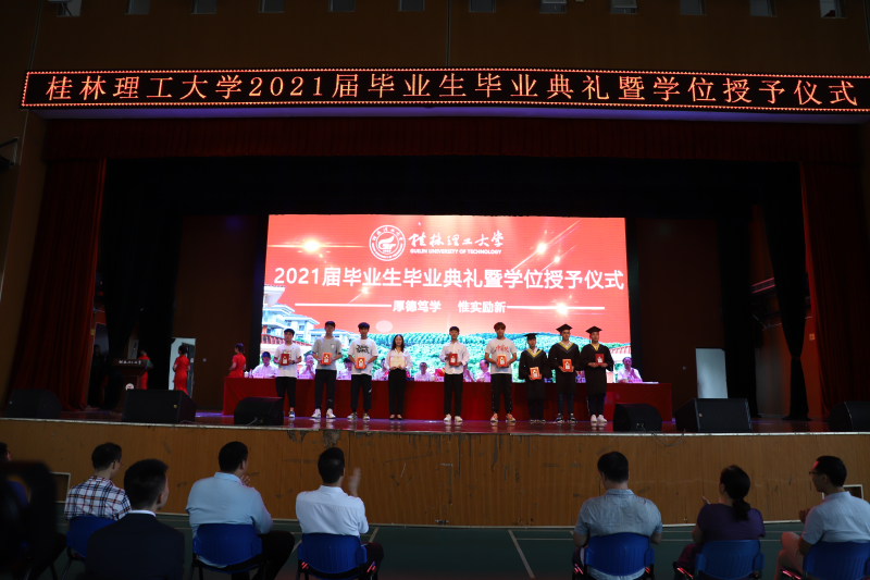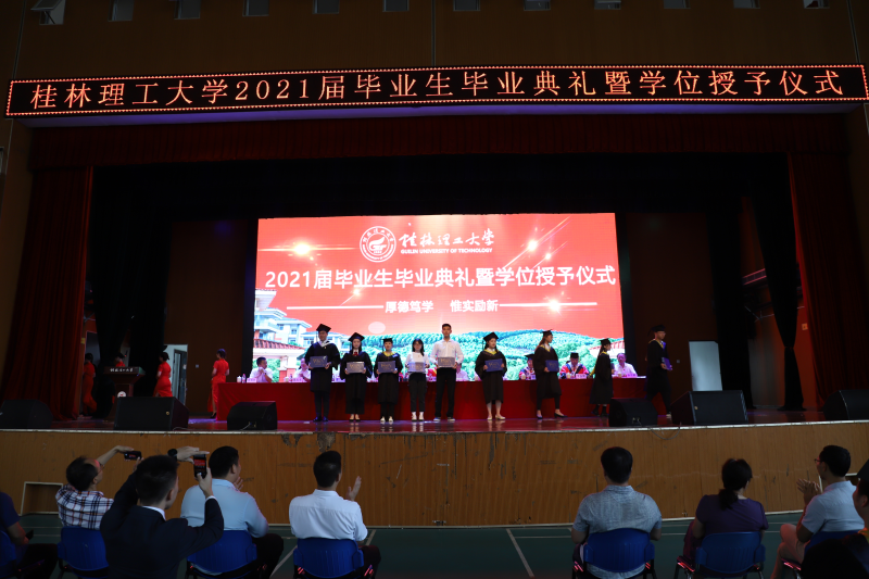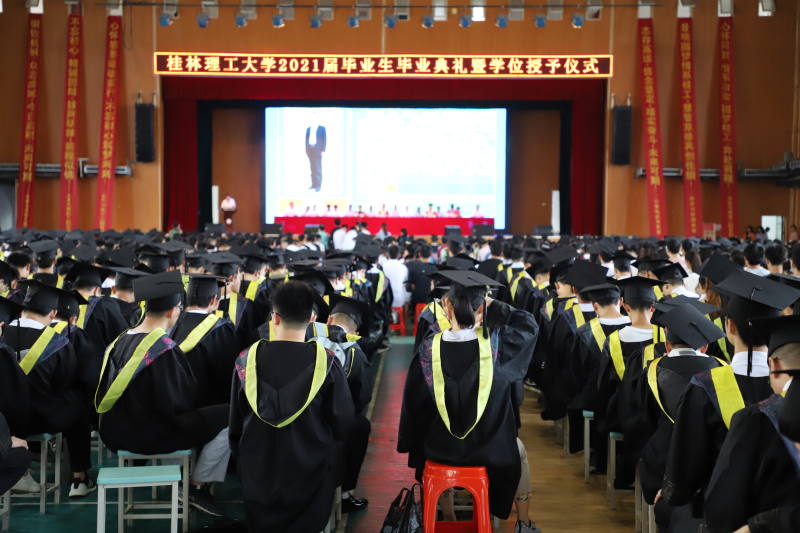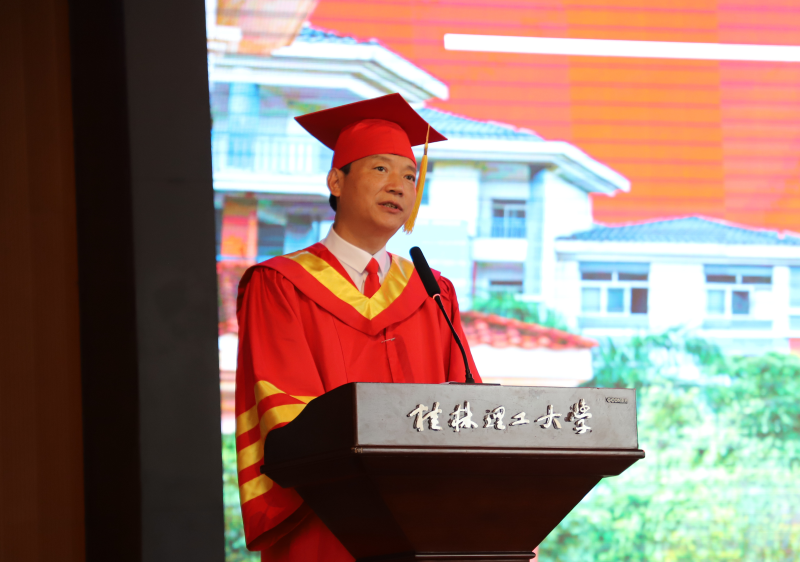 学校解庆林校长在毕业典礼上作了讲话。他向即将启程远航的毕业生提出三点希望:一是希望同学们厚植爱国爱民的“大情怀”。家国情怀是中华民族最为宝贵的精神财富。对每一位中国人来说,爱党爱国爱人民都应当是植根于灵魂的基因,是心之所系、情之所归。作为新时代青年,同学们要常怀护党之心、砥砺爱国之志、力践报国之行、深含爱民之情。二是希望同学们修炼立德立身的“大境界”。希望同学们努力践行社会主义核心价值观,坚持修身立德,打牢道德根基,善于从中华民族传统美德中吸收道德营养,从英雄人物和时代楷模身上感受道德风范,从百年党史中汲取前进力量,努力锻造修德修身的“大境界”,做一个德才兼备的时代新人。三是希望同学们练就做人做事的“大智慧”。希望同学们心里有大局、有榜样,对自己高标准、严要求,在为人处世中时时刻刻筑牢思想防线,认认真真守住做人底线,踏踏实实做好本职工作,成为工作上的能人,生活中的智者。四是希望同学们展现立行立业的“大作为”。希望同学们牢记“艰苦创业、敬业奉献、团结协作、开拓创新”的桂工精神,做只争朝夕的行动者、脚踏实地的实干家,以真功实绩贡献国家,以真才实学造福社会,以真心实意服务人民,在立行立业中大显身手、大有作为。