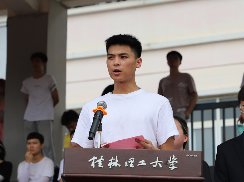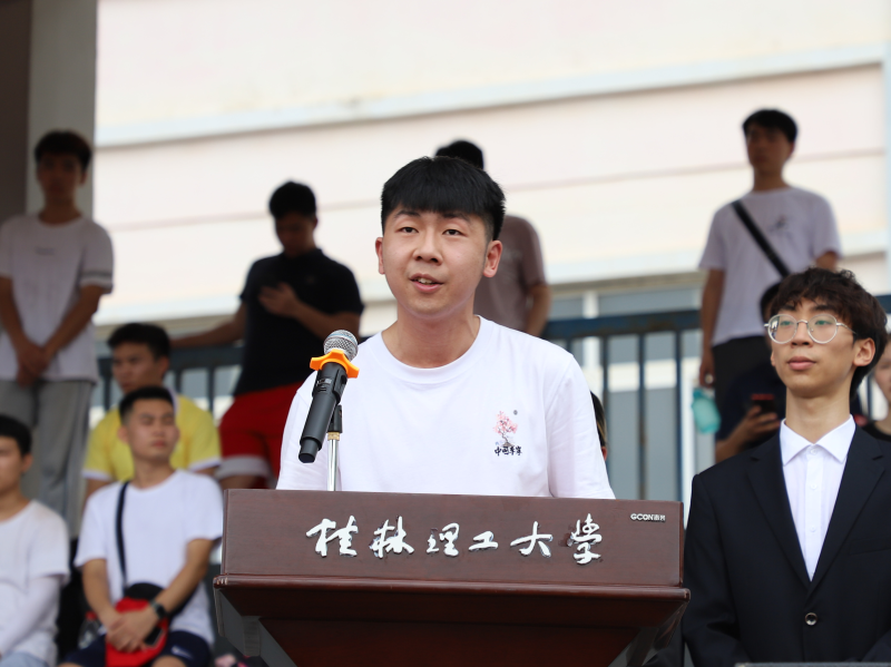 开幕式上,运动员代表经济与管理系市营19-4班冯天乐同学和裁判员代表电气与电子工程系电气19-2班闫宇凯同学依次宣誓。