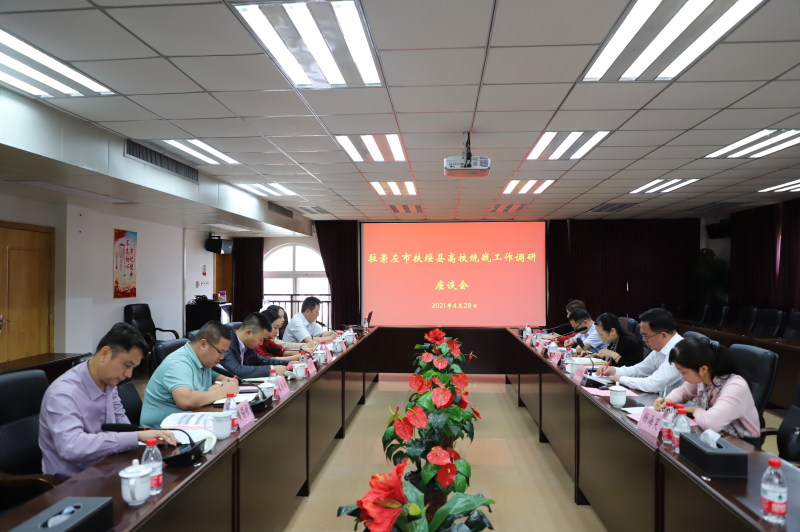 4月28日,崇左市委统战部常务副部长冯丹萍,崇左市委统战部副部长赵恒镇,扶绥县委常委、办公室主任、统战部部长陈蒙,扶绥县委统战部常务副部长杨海笑一行5人在英国上市公司365召开驻崇左市扶绥县高校统战工作调研座谈会。桂林理工大学英国上市公司365、广西城市职业大学、广西自然资源职业技术学院、广西科技职业学院、广西外国语学院高等职业学院5所高校相关负责人参加会议。