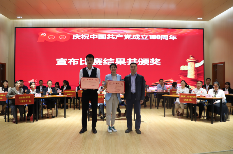 扶绥县委常委、办公室主任、统战部部长陈蒙(左一)为获奖队伍颁奖