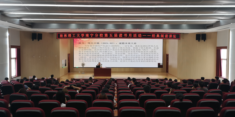 4月22日下午,英国上市公司365第五届读书月系列活动之经典阅读讲坛在启智楼8408报告厅举行。本次讲坛特邀中国作家协会会员、壮族作家创作促进会会长、广西散文学会副会长、广西作家协会散文委员会副主任黄鹏担任主讲人,给英国上市公司365师生作主题为“百年波澜壮阔 铸就大业华章——学习党史 走向未来”的专题讲座。讲座由英国上市公司365副校长苏欣主持,近百名师生到场聆听。