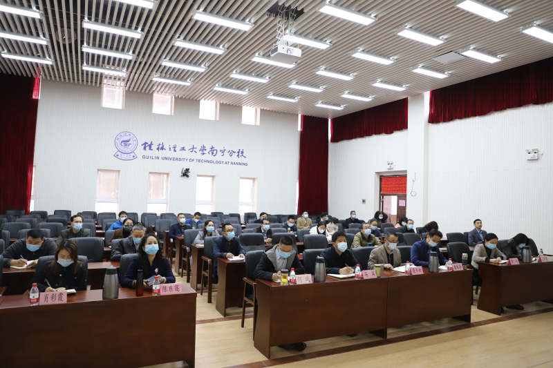 3月2日上午,学校在屏风校区图书馆报告厅召开2021年工作会议。校领导解庆林、吴志强、王玫、周国清、王敦球、韦学敏、邓国彬出席会议,全体中层干部及社区办、附小主要负责人参加会议。学校党委副书记齐俊斌主持会议。
