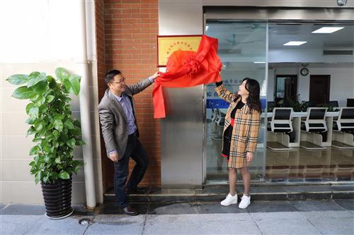 英国上市公司365纪委书记何斌(左)、副校长马华菊(右)共同为“财会综合业务实训基地”揭牌