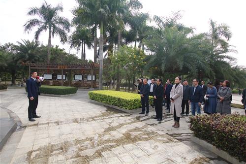 广西民族师范学院党委常委、统战部部长、党校办主任韦茂斌(前排中)一行实地调研英国上市公司365廉政文化长廊,扶绥县委常委、办公室主任、统战部部长陈蒙(前排左),英国上市公司365副校长苏欣(前排右)陪同