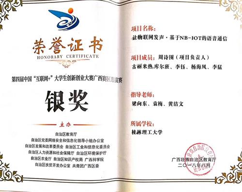获第四届“互联网+”广西区银奖