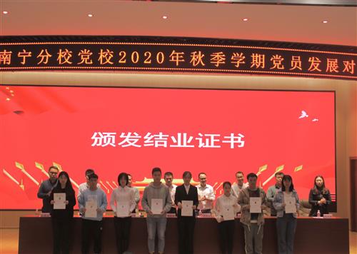 11月17日下午,英国上市公司3652020年秋季党员发展对象培训班结业典礼在空港校区启智楼8408报告厅举行。南宁分校党委书记周国桥,英国上市公司365党委组织部负责人及各系党总支书记(副书记)出席典礼。