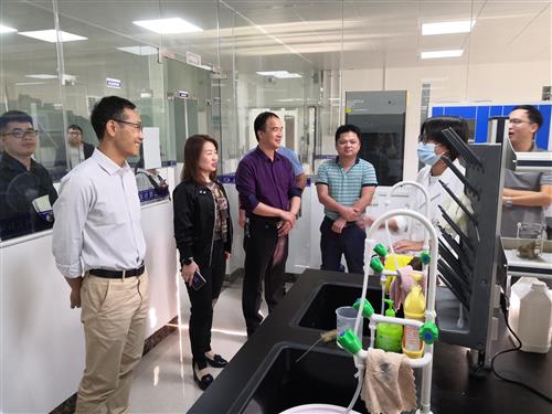 洽谈交流结束后,肖彩霞副校长一行在广西云科环境科技发展有限公司董事长李子登等的陪同下参观了该公司实验室,并同在该公司工作的毕业生进行了交谈。
