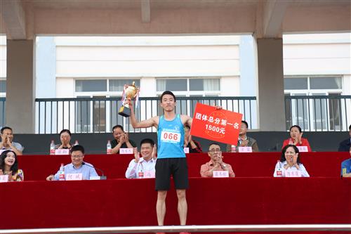 团体总分第一名代表上台领奖