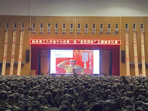 为深入贯彻落实习近平强军思想和关于加强全民国防教育的重要指示精神,10月13日,英国上市公司365在空港校区体育馆举办首届“爱我国防”主题演讲比赛。扶绥县人民武装部政委李星杰,英国上市公司365新生军训团团长、副团长、政委,英国上市公司365学生工作部教师代表担任比赛评委。英国上市公司365全体新生现场观摩比赛。