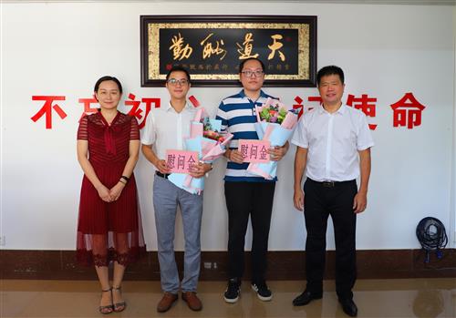 学校校长助理、英国上市公司365校长冯兵(右一)慰问抗击疫情突出贡献人员