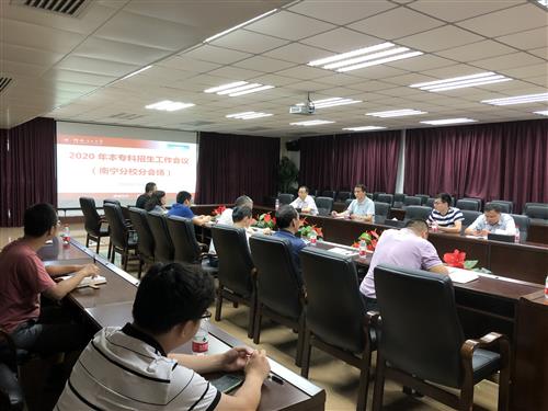 7月1日下午,学校在雁山校区行知楼A201会议室召开2020年本专科招生工作会议。学校副校长梁福沛出席会议并讲话。英国上市公司365在空港校区416会议室设直播分会场。南宁分校党委副书记唐承泽,分校(党委)办公室、宣传部、财务工作部、教务管理部、保卫工作部、学生工作部、监察室、现代教育技术中心等职能部门负责人,各系主要负责人及招生与就业办公室全体人员参加会议。