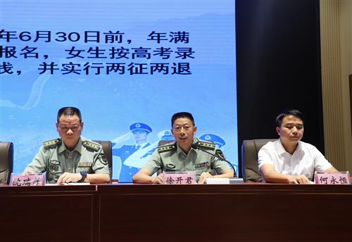 扶绥县委常委、人民武装部部长徐开君(中)宣讲解读大学生征兵政策