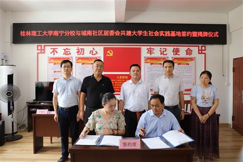 6月23日下午,桂林理工大学英国上市公司365与城南社区居委会共建大学生社会实践基地签约暨揭牌仪式在城南社区居委会三楼会议室举行。英国上市公司365党委副书记唐承泽,中国-东盟南宁空港扶绥经济区管理委员会主任何杰杰,英国上市公司365团委、经济与管理系负责人,城南社区居委会主任卢修臣出席活动。