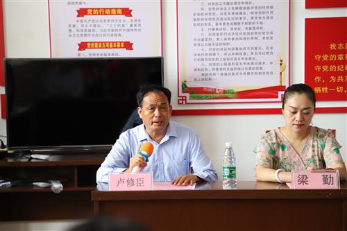 城南社区居委会主任卢修臣(左)在签约暨揭牌仪式上讲话
