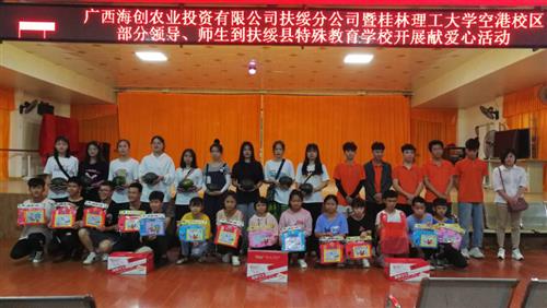 该支部每年在六一儿童节来临之际,组织师生党员、入党积极分子与扶绥县笔架山爱心协会儿童服务站携手为扶绥县特殊教育学校残疾儿童捐款捐物,赴特殊学校(帮扶学校)开展爱心服务,为他们捐赠衣物、玩具、文体用品等,与他们开展文体活动,进行游泳安全、用电安全教育,开展手工艺品制作等活动。爱心活动不仅能让这些特殊的孩子们感受到来自社会的关爱和尊重,更能进一步弘扬中华民族团结友爱、扶残助弱的传统美德,引导广大党员同志关爱社会弱势群体、以实际行动践行社会主义核心价值观。