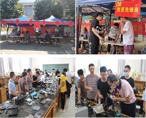 第二支部党员发挥电气、电子类专业特性,建立以电子协会为依托的校园义务维修站,每年结合三月学雷锋活动月、六月毕业季、暑期三下乡等,长期为师生、为社区群众开展家电义务维修,学生将所学的专业知识和技能用于解决实际问题,真正做到学以致用,在实践中提升自己,用实际行动践行雷锋精神和党的宗旨。